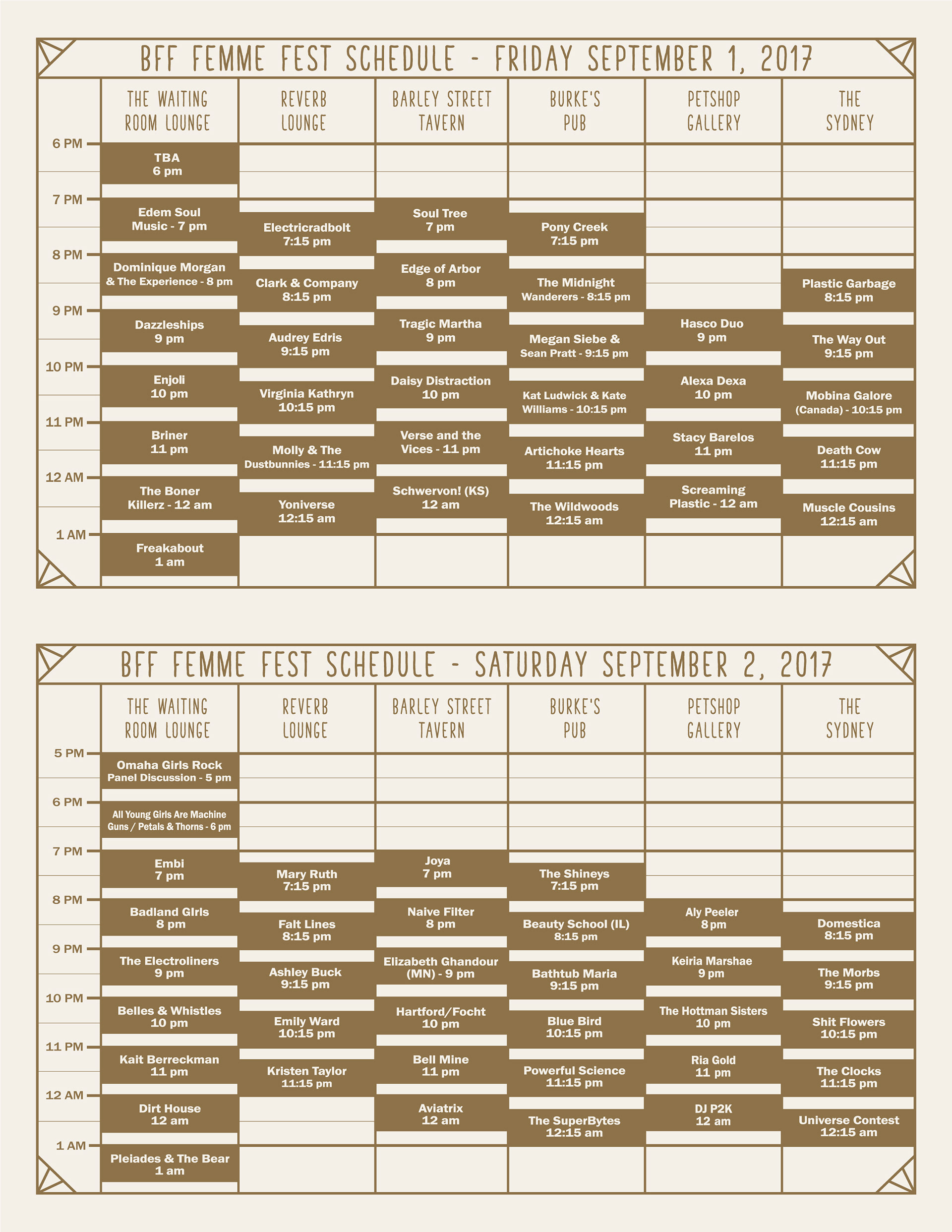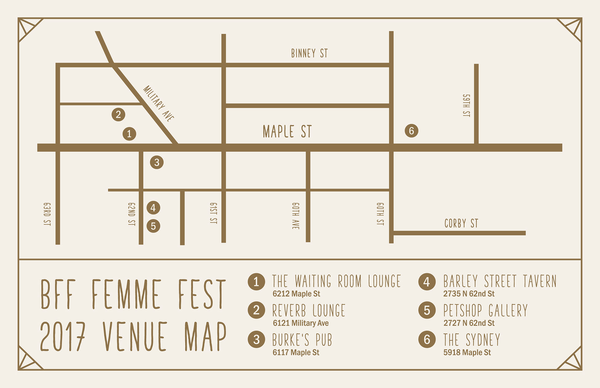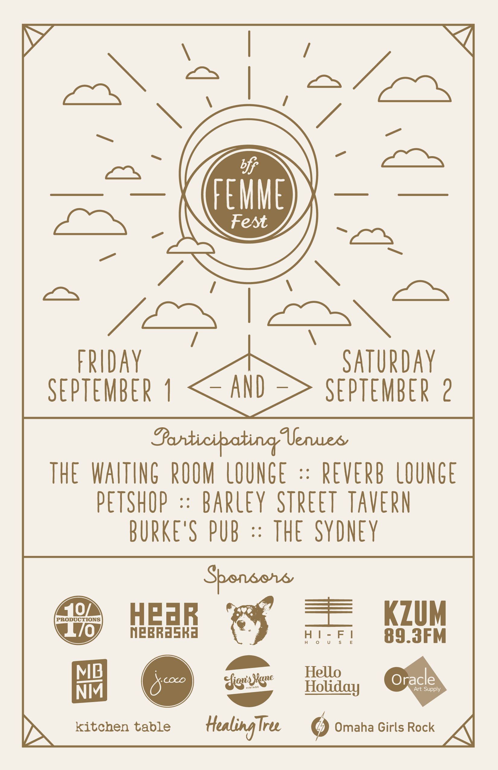 Logo design, apparel, and other designs created for BFF Femme Fest 2017.