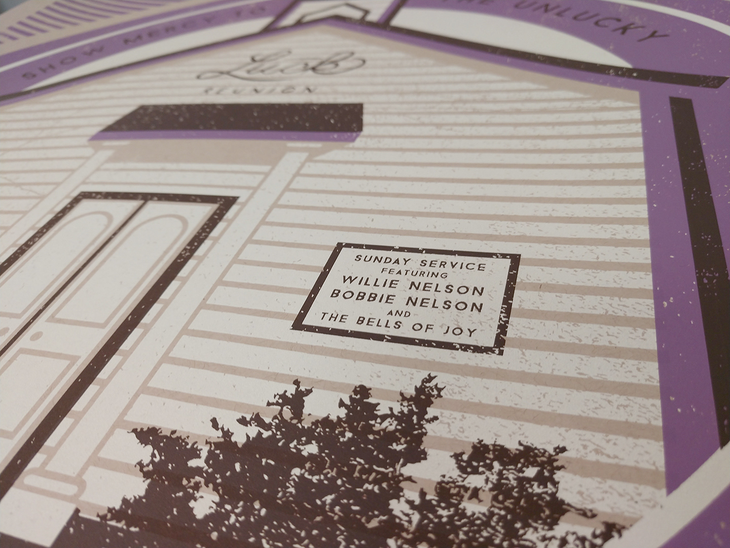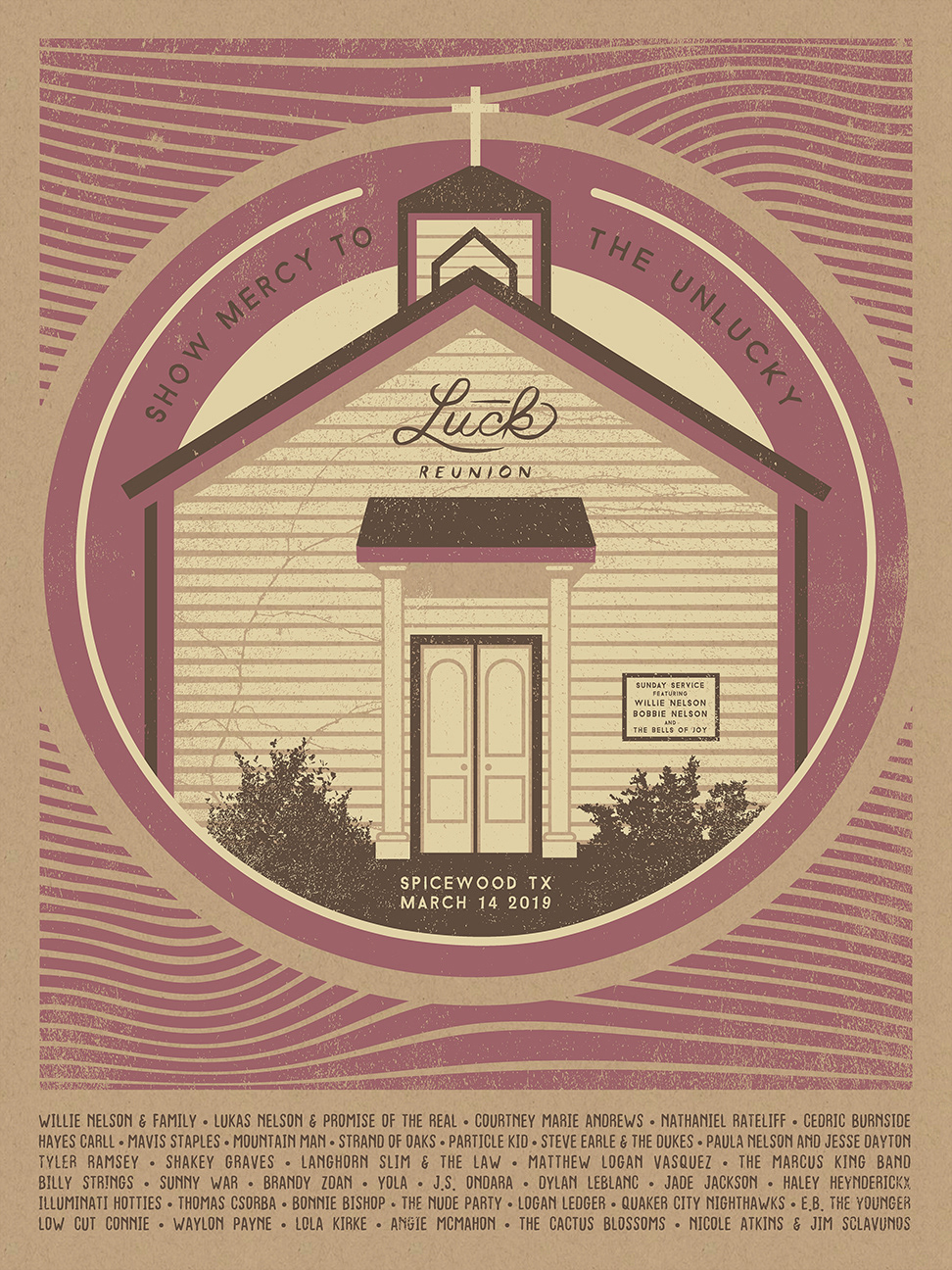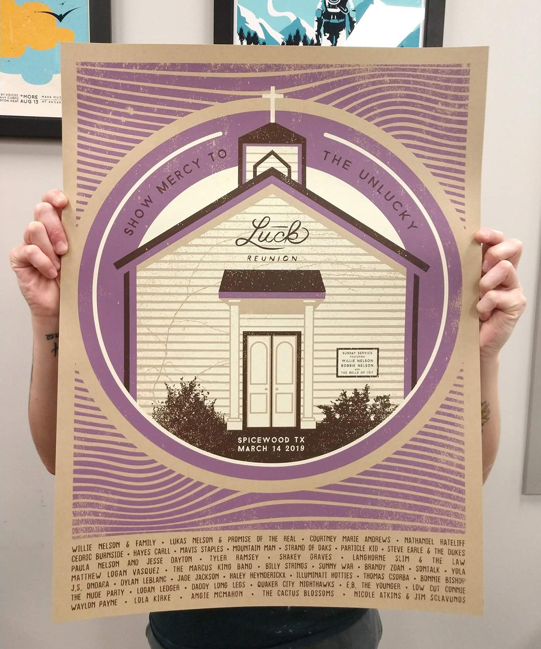 3-color screen printed poster for Willie Nelson's Luck Reunion Festival, 2019. 18 x 24" - 100 lb Cover Speckletone Kraft Printed at Ink Tank Merch, Omaha, NE