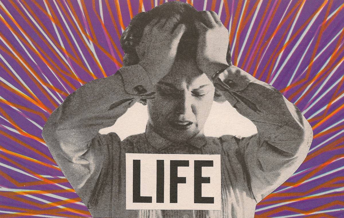 4 x 6" collages made from magazine clippings, mounted inside of a leather bound book.