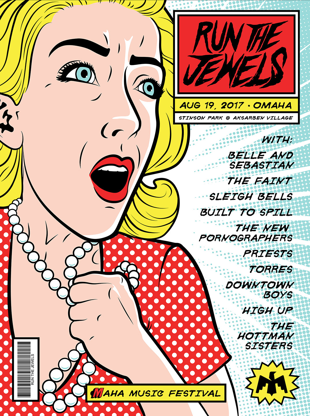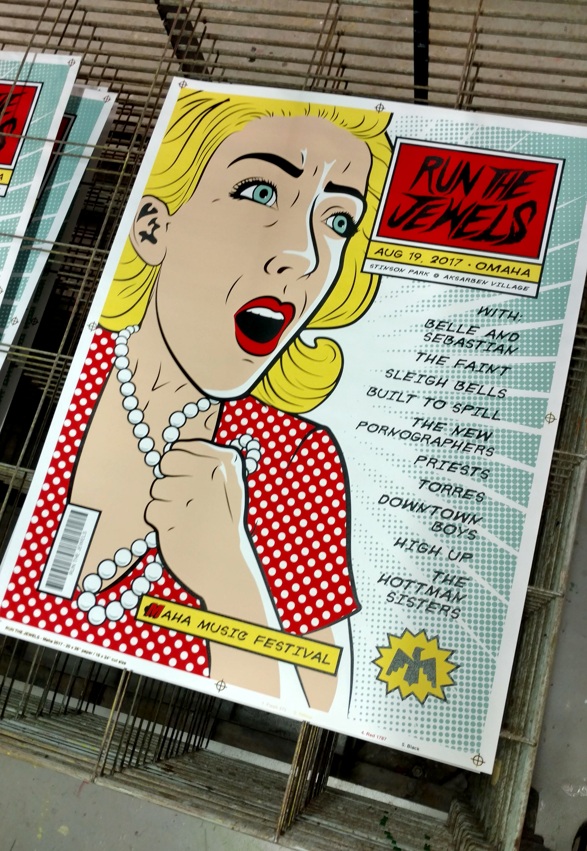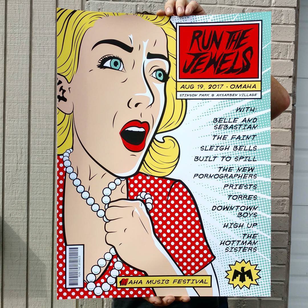 5-color screen printed poster for Run The Jewels at Maha Music Festival, 2017. 18 x 24" - 100 lb Cover White Printed at Ink Tank Merch, Omaha, NE