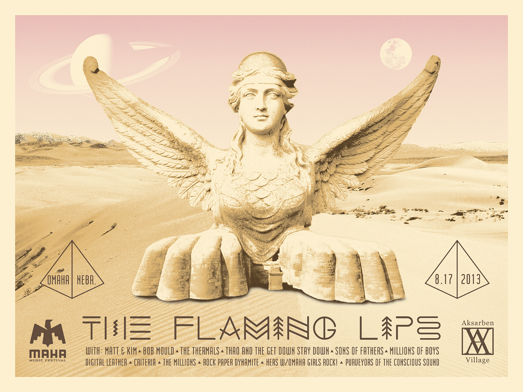 3-color screen printed poster for The Flaming Lips at Maha Music Festival, 2013. 18 x 24" - 100 lb Cover Off White Paper Printed at Ink Tank Merch, Omaha, NE